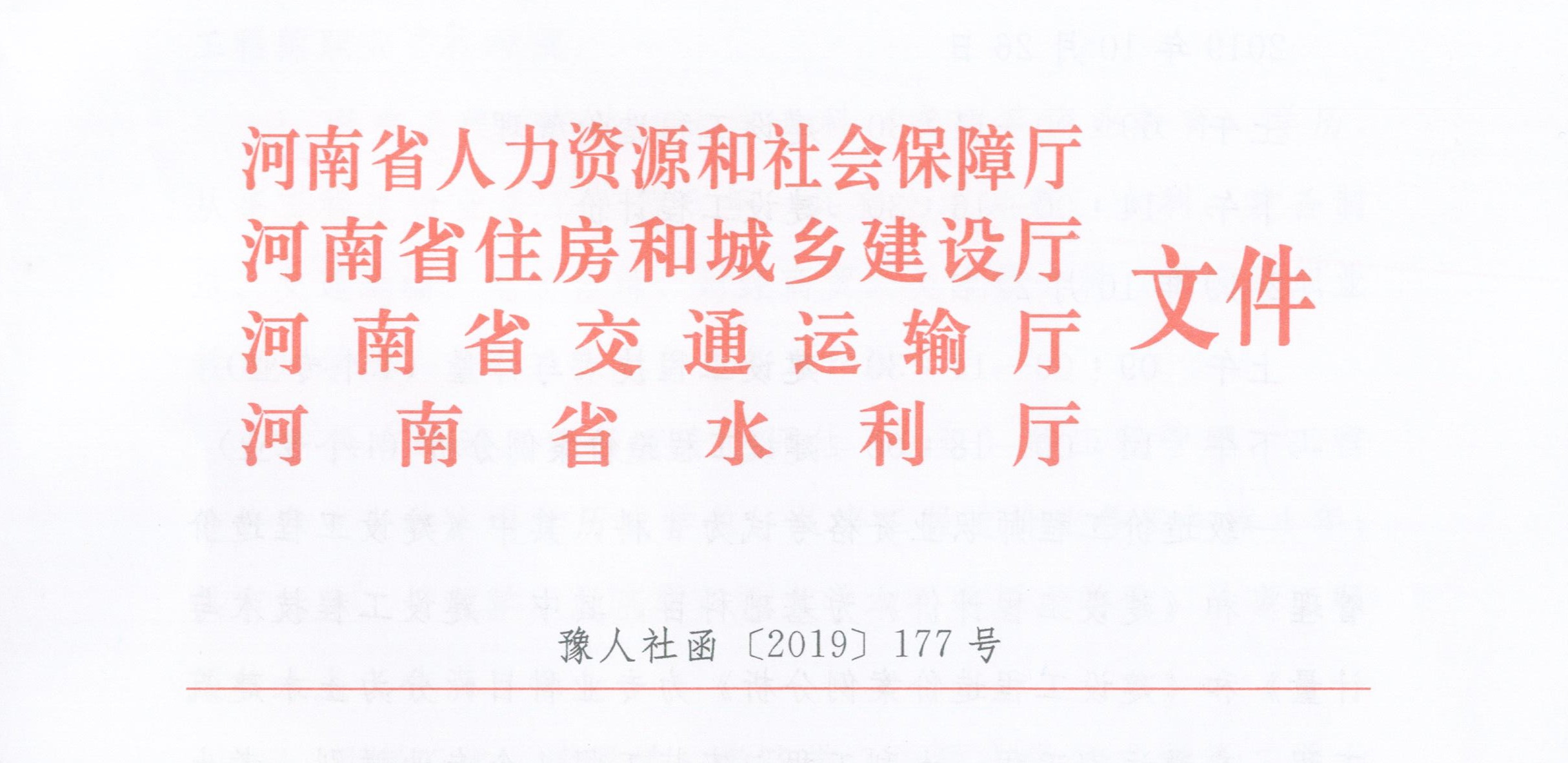 各省轄市、省直管縣(市)人力資源社會保障局、住房和城鄉(xiāng)建設(shè)局、交通運輸局、水利局,省直及中央駐豫有關(guān)單位: